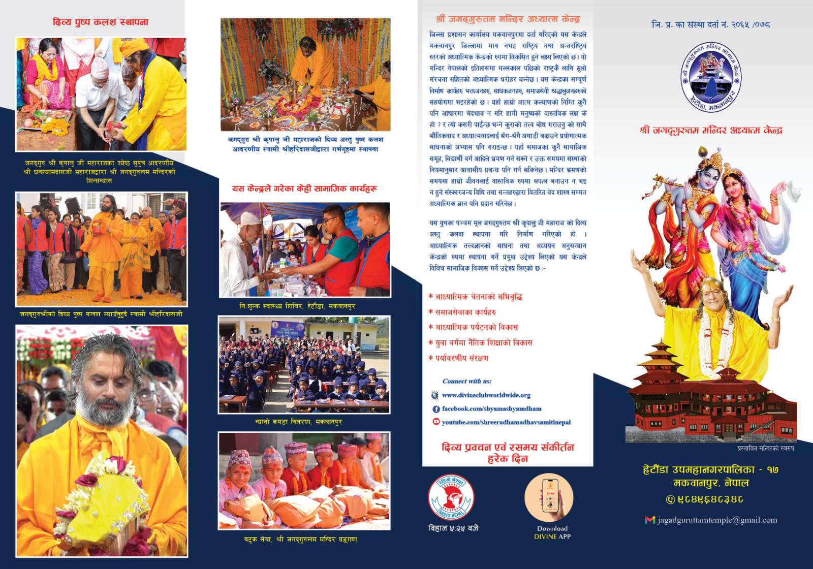 Learn Moreजगद्गुरुत्तम मन्दिरको निर्माण कार्य तपाईंहरूको अमूल्य सहयोगले अघि बढिरहेको छ। धर्म, संस्कृति र आध्यात्मिकताको प्रवर्द्धनका लागि तपाईंको योगदानले ठूलो महत्त्व राख्छ। हाम्रो यात्रामा सहभागी भइ दिनुहोस् र पुण्य कमाउनुहोस्।